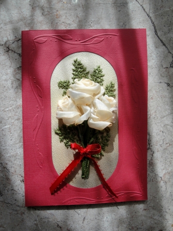 я тоже так подумала, т.е., что розы собирались и наклеивались и вообще не узнала автора, т.е. Вас, Людмила, в другом стиле открытка, но тоже очень красиво и необычно!