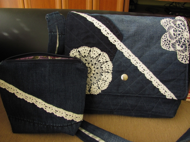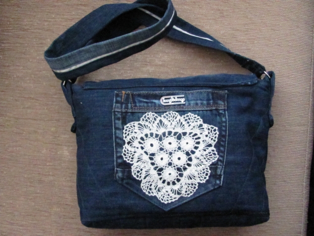 Сумка из старых джинс и кружева бабушки. Заказала старшая дочка к весне.