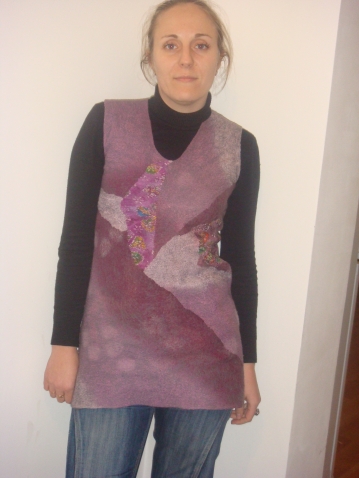 Мне очень нравится валять одежду, экспериментирую с разными техниками. Фотографий мало, что то забыла сфотографировать, что то еще лежит ждет своей очереди, а что то лежит в полуфабрикатах (как правило это то. что не получилось так как я задумывала и лежит, ждет новой идеи. В войлоке нет брака, все дефекты переводим в эффекты.)
