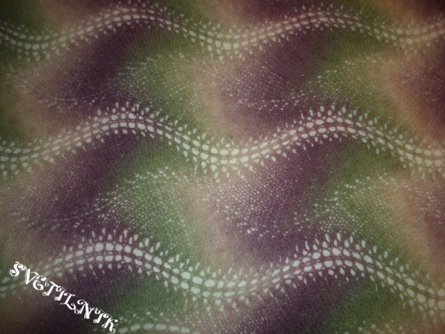 В общем, решила "ударить по палантинам". И вот что у меня получилось из той же пряжи, что и "авантюрная" шалька. Теперь я вполне довольна результатом. Здесь "Дундага рулит".