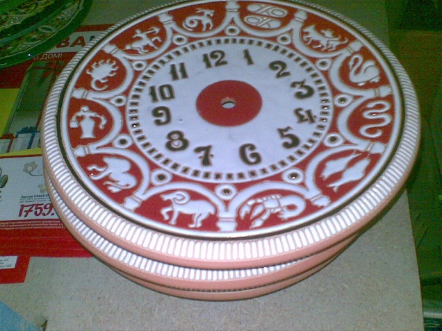 а мы делаем из керамики вот такие циферблаты - копия часов на вокзальной башне. Есть не проданные еще 7 шт. стоит один 1000 руб. диаметр 27 см