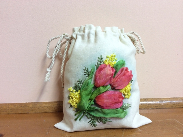 Прекрасная вышивка, а то, что тюльпаны увядающие (как Вы сказали), так это наоборот очень интересно и необычно. Вы хорошая ученица Людмилы — Мастера вышивки ленточками.