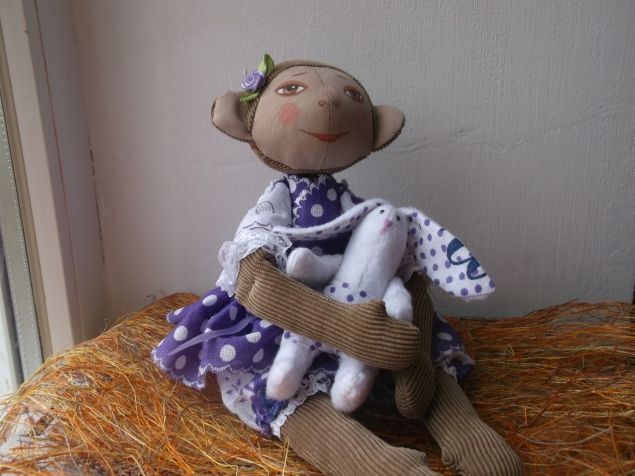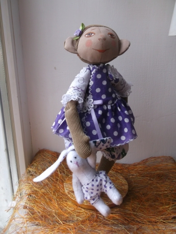 На одной обезьянке конечно не остановилась. У второй ножки сделала на пуговичном креплении.
