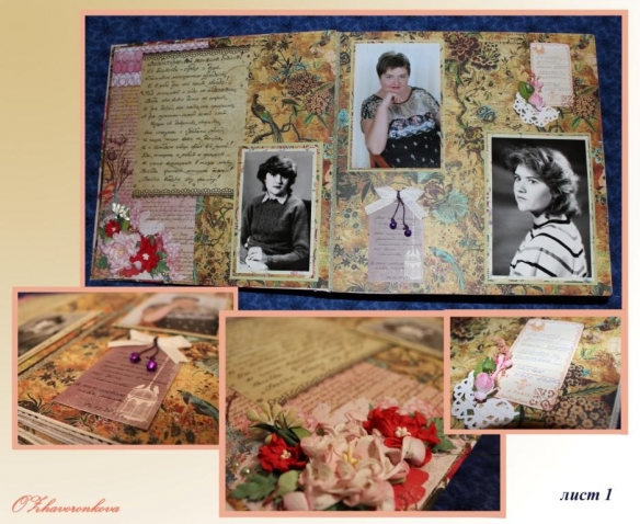 В этом топике представляю Вашему внимаю альбом в стиле скрапбукинг, который я делала маме на юбилей. Альбом выполнен "с нуля". Обложка мягкая, как подушечка))). Размер: 30х30см, 14 разворотов, т.е. 28 листов. В альбоме очень много потайных кармашков, гармошек и прочих разворотов.