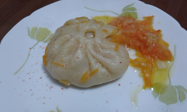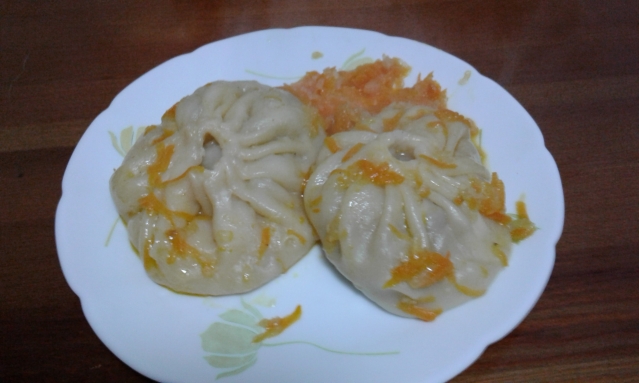 мантоварка у меня большая, и готовить в ней несколько мант только на меня и на дочю было как то нерационально))).недолго думая почистила морковку, лучок, обжарила все это в воге, добавила немного воды и соли… и сверху(как бы на овощную подушку) разложила манты.закрыла вог крышкой и тушила на медленном огне до готовности.мне этот эксперимент очень понравился.получились вкуснющие манты на подушке)))