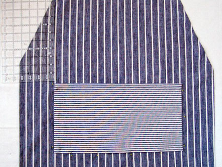 10.Расположите карман на фартуке ровно посередине. И пришейте его к переднику.