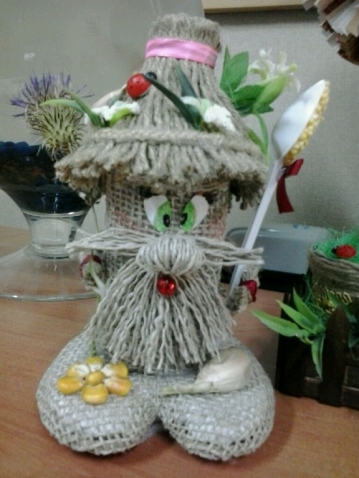 усмеяться, постирали натуральный мешок из-под картошки и сшили из того-что было, глаза вырезали и маркером покрасили)