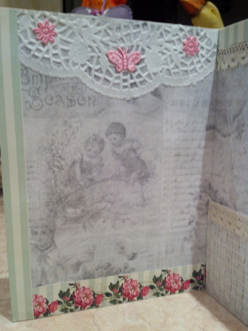 Доброго времени суток, мои дорогие! Сделала открытку для своей средней сестрички Танюшки на день рождение. Сестричка живёт в Клайпеде (Литва) и в воскресенье приедет ко мне и нашей младшей сестричке Лилюшке на юбилей. Так вот, Танюшка, как и все мы сёстры, очень любит наш родительский дом. Поэтому открытку сделала с окном, на котором висит шторка с родительского дома. Как всегда делала открытку, как мне вздумалось. Так, что очень строго не судите. Высота открытки 20 см., ширина одной половины 15 см. Кто занимается этим видом творчества может, что то подскажете, посоветуете.