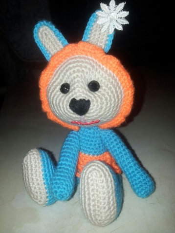 если честно я подумала маленький львенок, с большими ушами, а это значит зайка, а оранжевый круг это что? милашка получился
