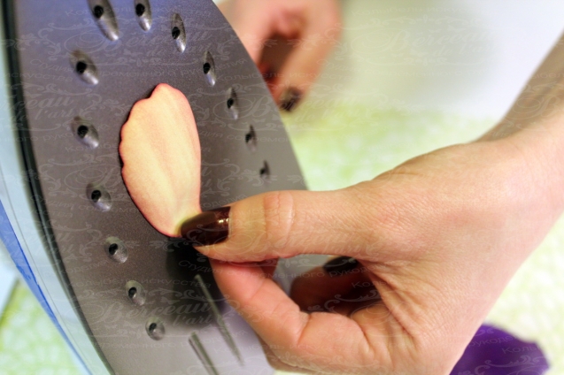 3.Разогреваем лепестки с помощью утюга и моделируем с помощью молда.