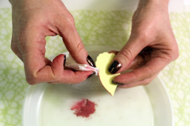 2. Для тонировки лепестков подбираем понравившийся оттенок пастели и с помощью влажной салфетки тонируем лепестки.