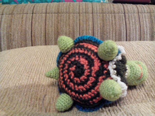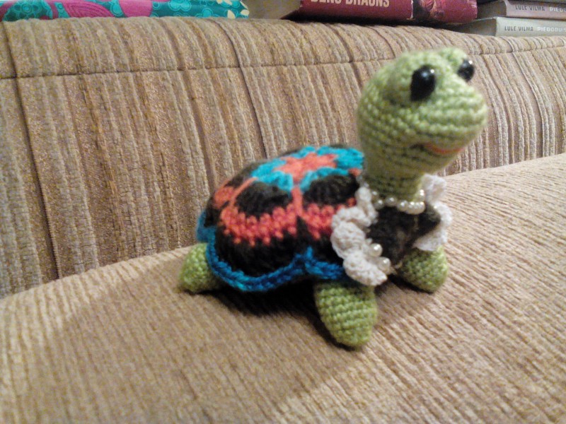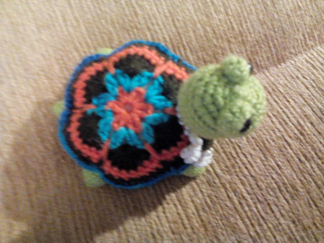 Ну тут меня одолел Грип. От лежала пара дней с высокой температурой потом стала лучше но сил особенно не было, но хотелось уже хоть что не будь сотворить. Но вот лежала в постеле и осуществила сваю маленькую мечту. Черепашка была моя терапия, теперь я здорова и рада своей малышке :))