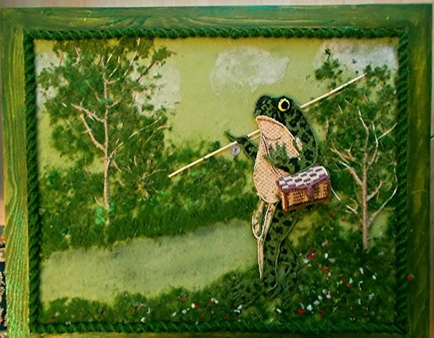 как мне нравится, что лягушонок, а то везде коты да совы -надоели. Отличное панно! Мне нравится когда техники смешанные.