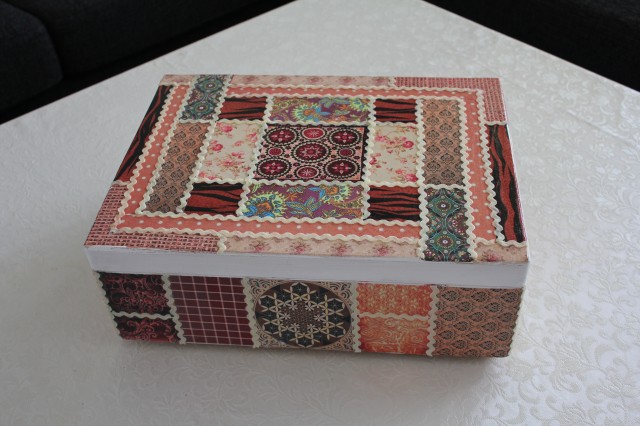 Вот такую коробку в технике печворк я сделала и расскажу вам что для этого надо.