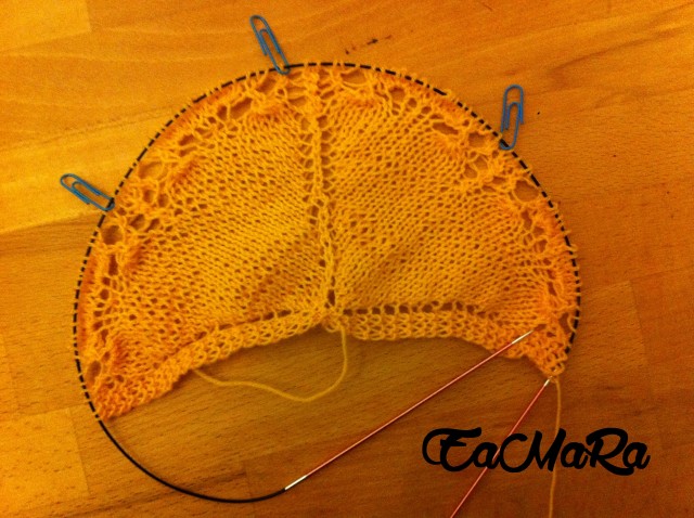 В основном рекомендуют закрыть крючком с арочками, я же сегодня закрывать буду спицами эластичным способом. Светлана выше показывала шаль на блокировке, у неё тоже так закрыто. Делайте как Вам нравится.