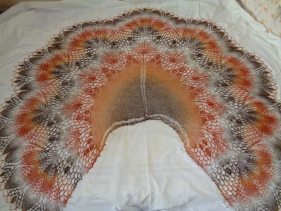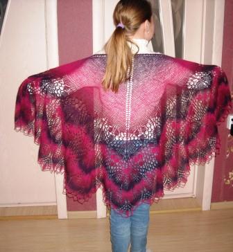 Очень красивая получилась шаль, она как солнышко светит и согревает.
