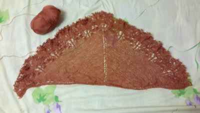 Я сейчас 59 ряд вяжу — очень хочется до 15 успеть связать… эта шалочка будеи мне подарком к дню рождения, даже если и немного позже блокировку сделаю — я ее уже люблю. Она очень по цвету подходит к моему осеннему пальто цвета терракот.