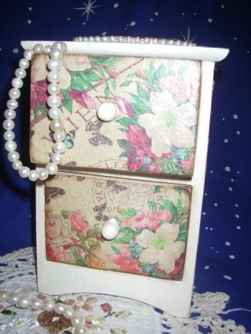 Такая классная заготовка у первого комодика! Он мне и по работе нравится больше.На втором медальон мне мешает.Мне кажется он вообще слишком большой для такого маленького комодика.Можно было эту же картинку, но не на медальон.а просто приклеить посередине и сделать окантовочку.