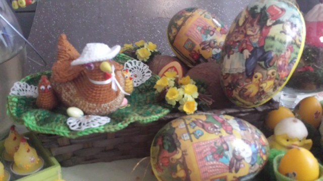 22 года назад первый раз в жизни увидела и узнала , что на пасху наряжаются деревья. А конкретнее ветки, которые ставяться в воду. Я так же добавляю букет что бы не просто пустая ваза внизу. Ветки настолько сильные что постоявши несколько недель (между Голландской и Русской пасхой) пускают всегда корни и можно высаживать в саду.