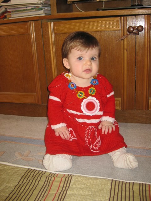 Замечательное платьице!!! Это вышивка или вывязывали цыпочек? И бусы ХОРОШИ!!!