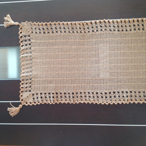 Продам Салфетку дорожку,связанную крючком из толстых меланжевых бежевых ниток. Удобн в уходе, так как не требует накрахмаливания. Обвязана нитками бежевого тона ,из которых так же сделаны кисти. Салфетка универсального назначения. Хорошо смотрится в современном интерьере. Размер 118x45 см. 100%мерсеризированный хлопок. Предложите Вашу цену. Заранее благодарна.