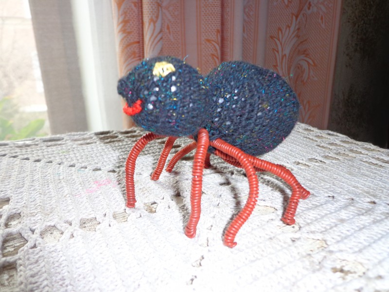 А это паучек. Ножки связать поленилась, сделала из проволоки в защитной пленке.