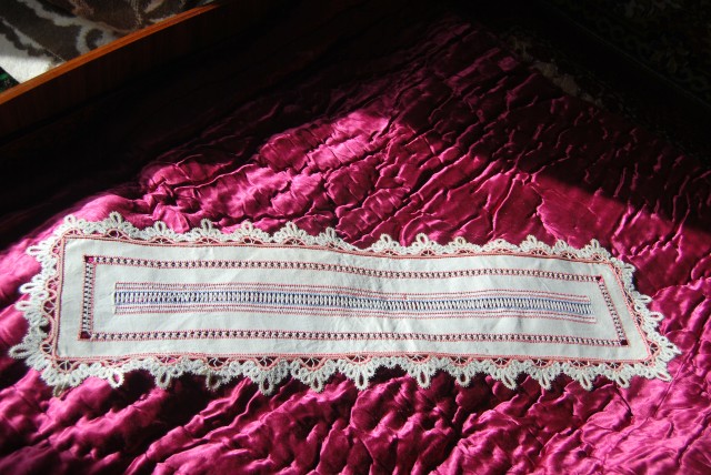 Наташа! Очень впечатлили! Это отдельная тема — семейные реликвии. То, что сделано с любовью — на века! И качество материалов впечатляет. А гусеничку я узнала, сама когда-то воротничок сделала. Такие милые воспоминания пробудили! СпасиБо!