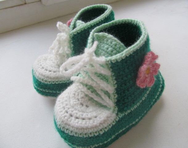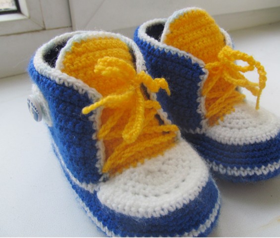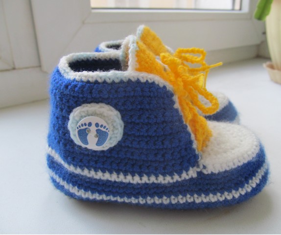 Это обо мне. А теперь хвастаюсь своими двумя работами для деток: пинетками-кедами.