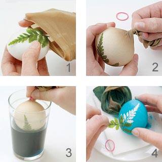 Только теперь хозяйки начинают проявлять свои умения и фантазии создавая рисунки на яйцах. Можно приложить любой лист или цветок и обътянувши куском пованных колготок или бинта создать уникальный рисунок.