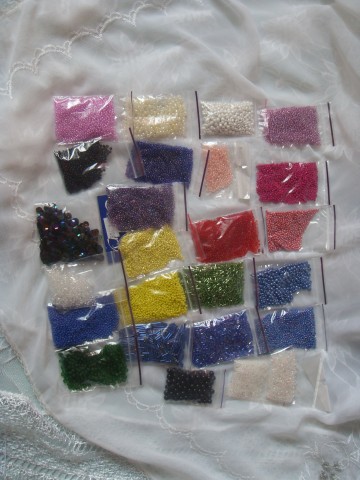 А дальше у меня был шок. Я увидела пакетище бисера. Был там и мелкий, и средний, и бусинки, и пайетки. Цвета - что душа пожелает.