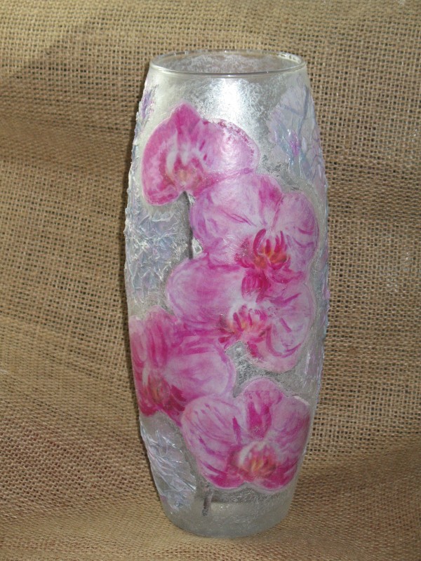 Ваза с орхидеями - объёмный декупаж.
