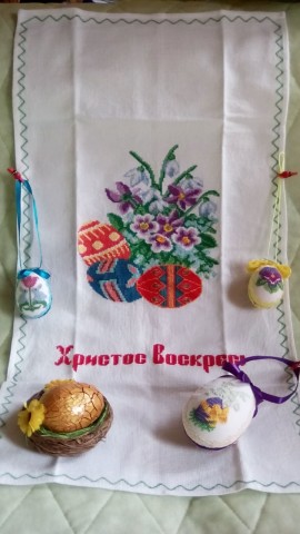 Вика,специально для меня вышила рушничок для пасхальной корзинки :-))