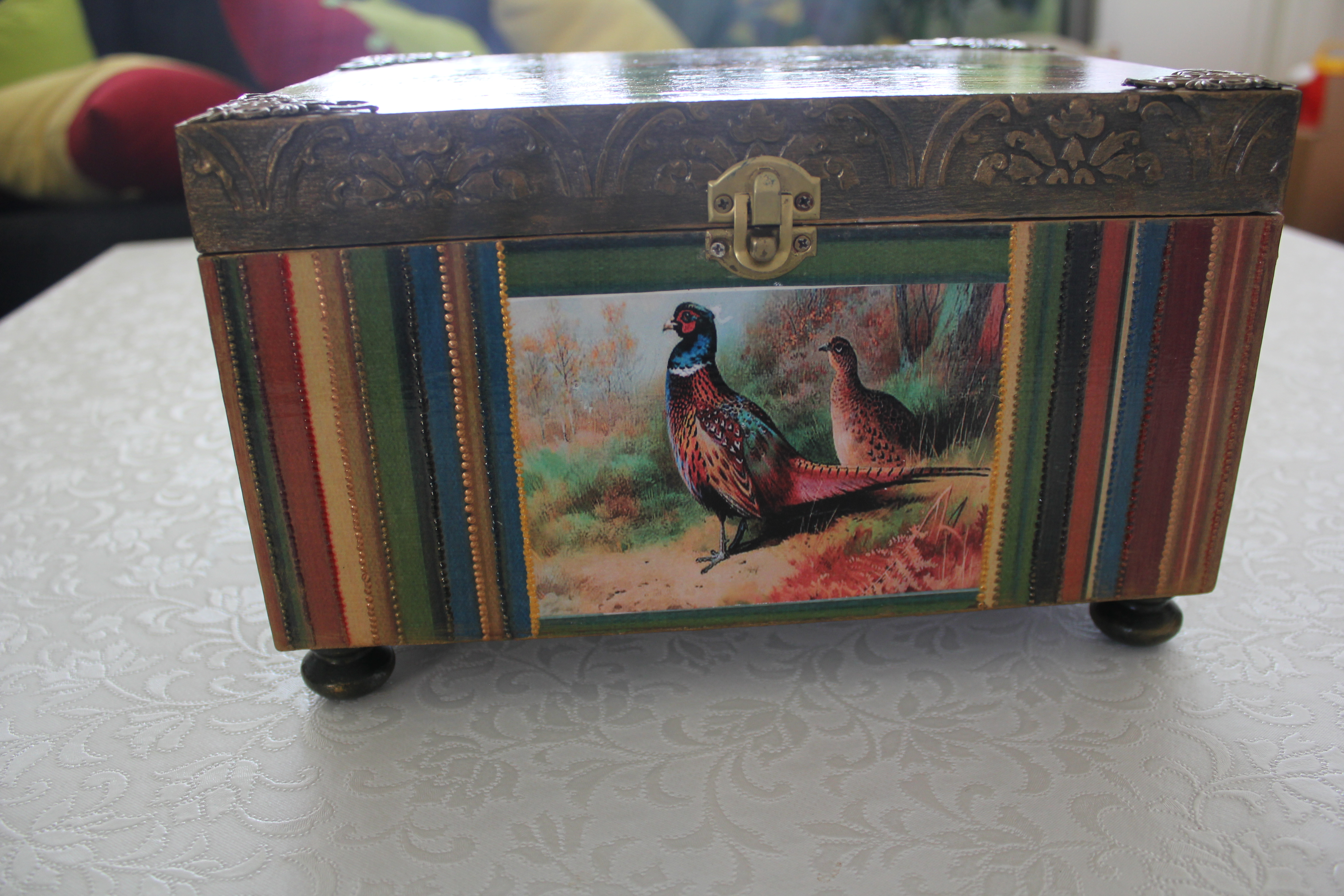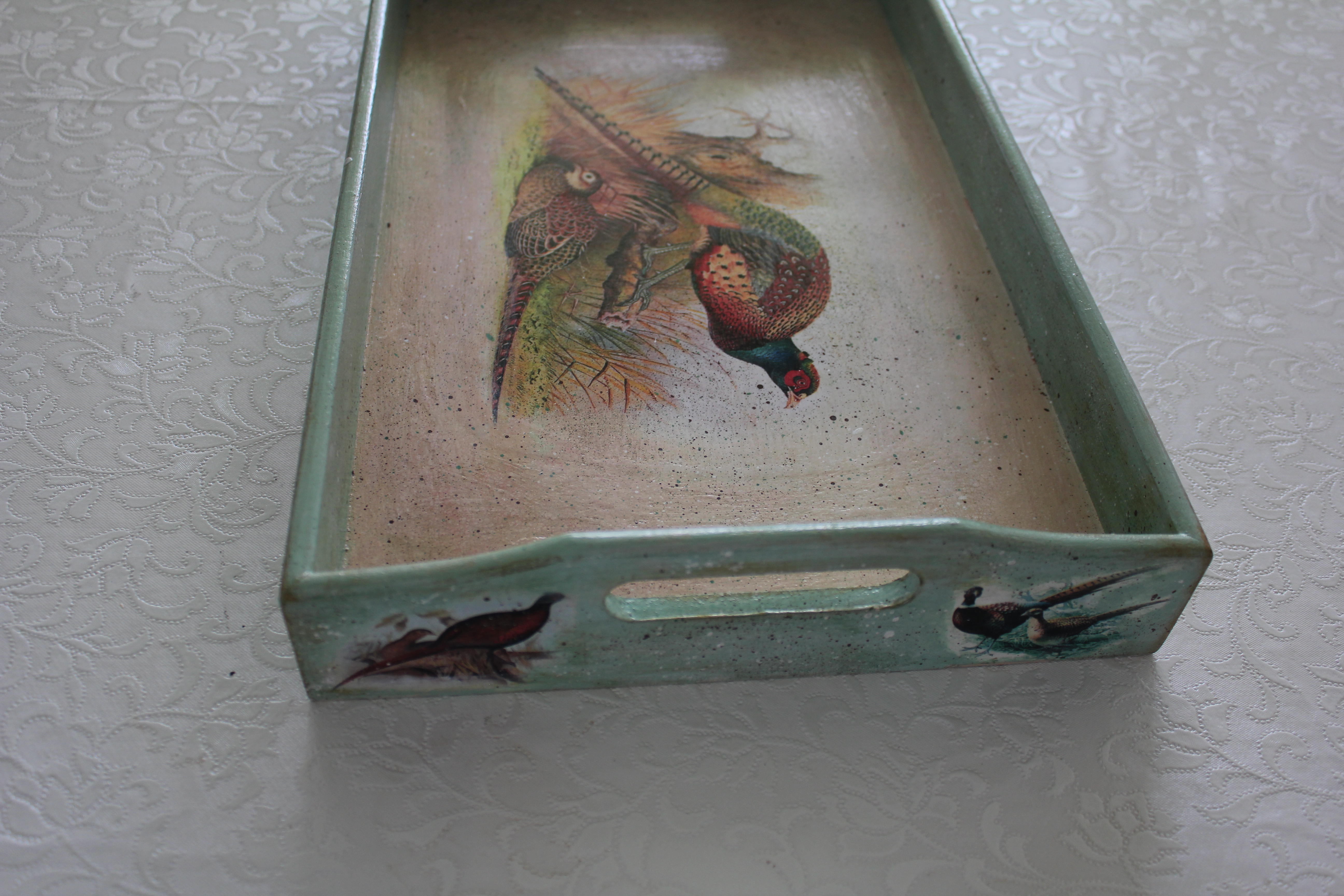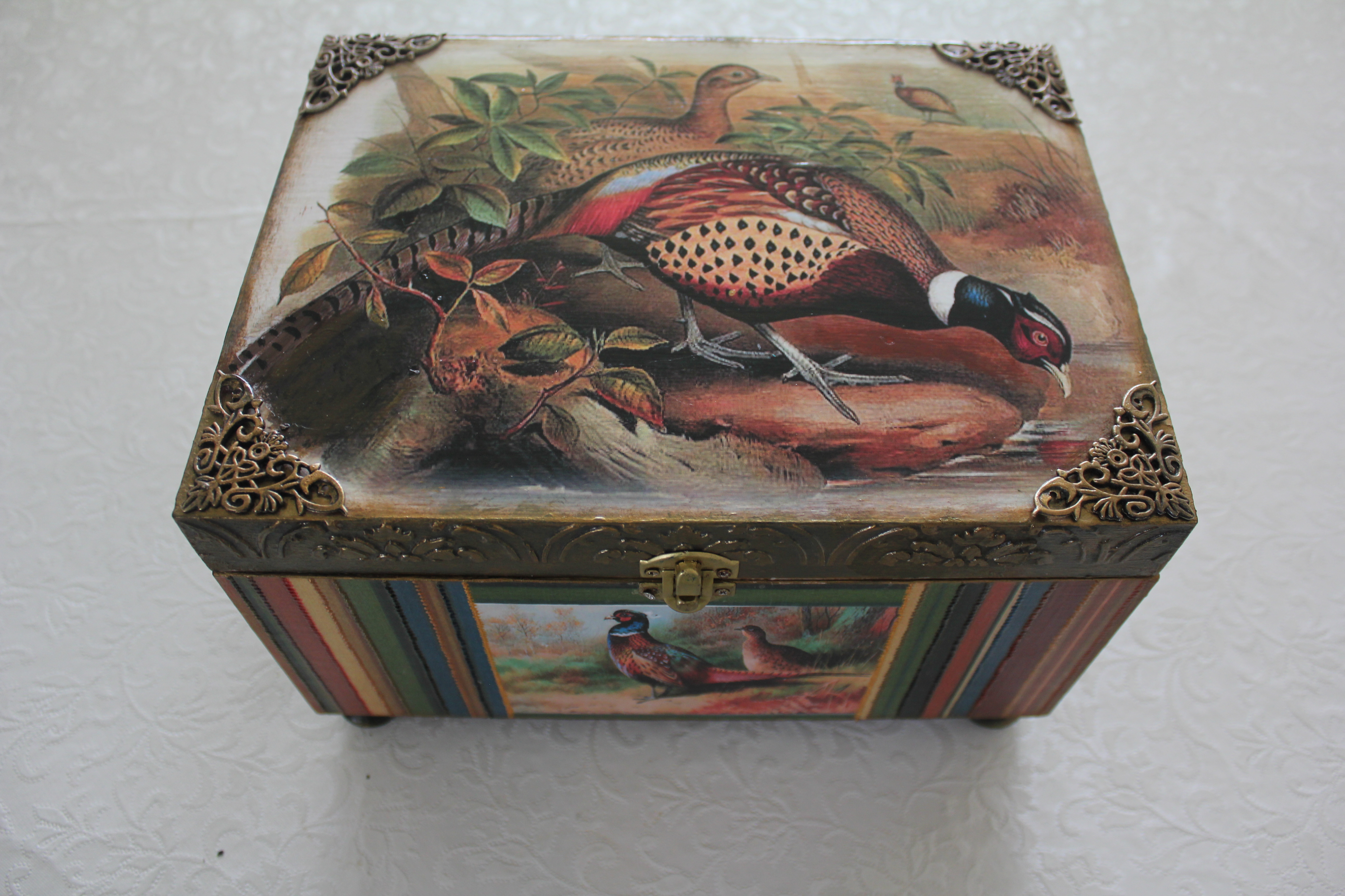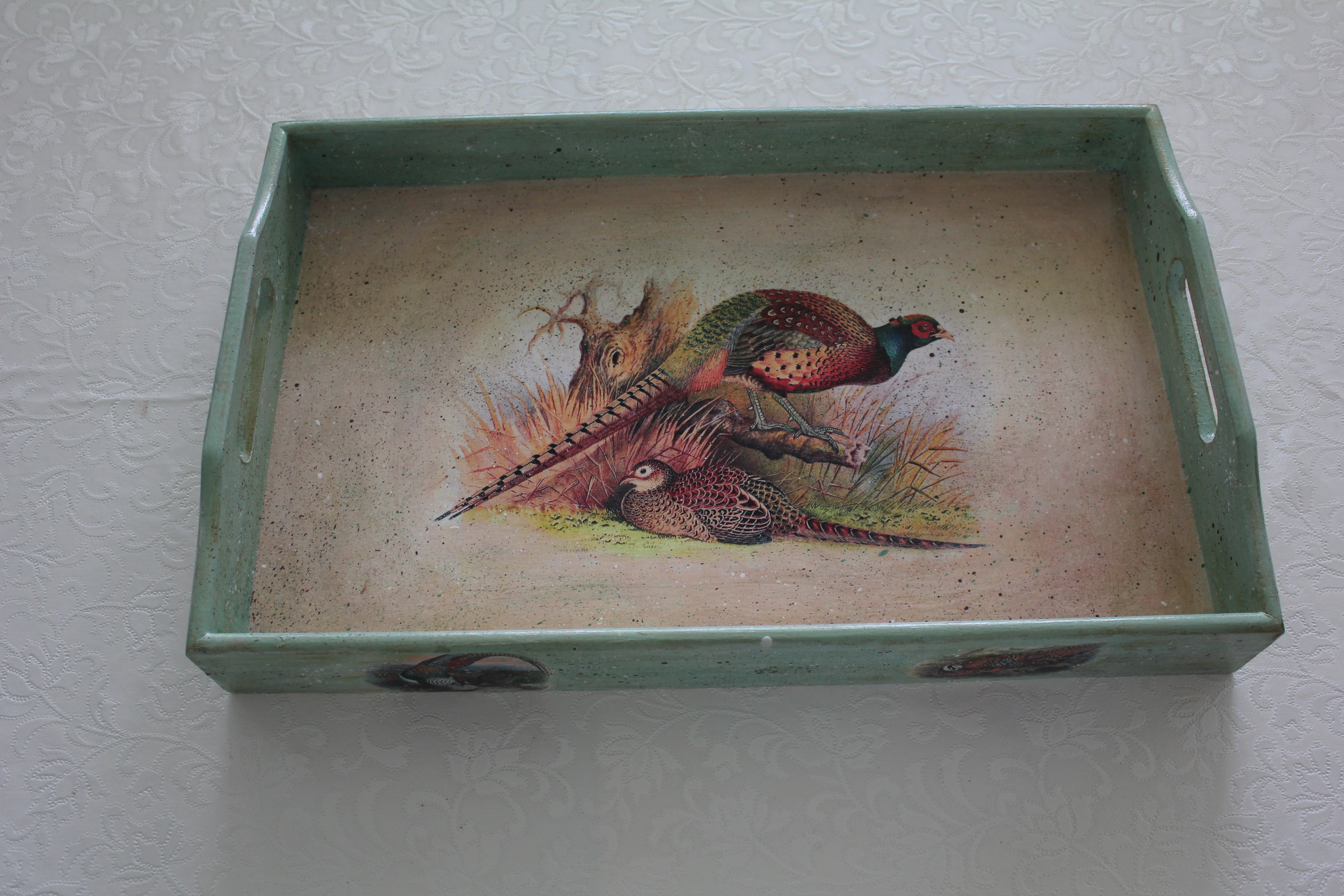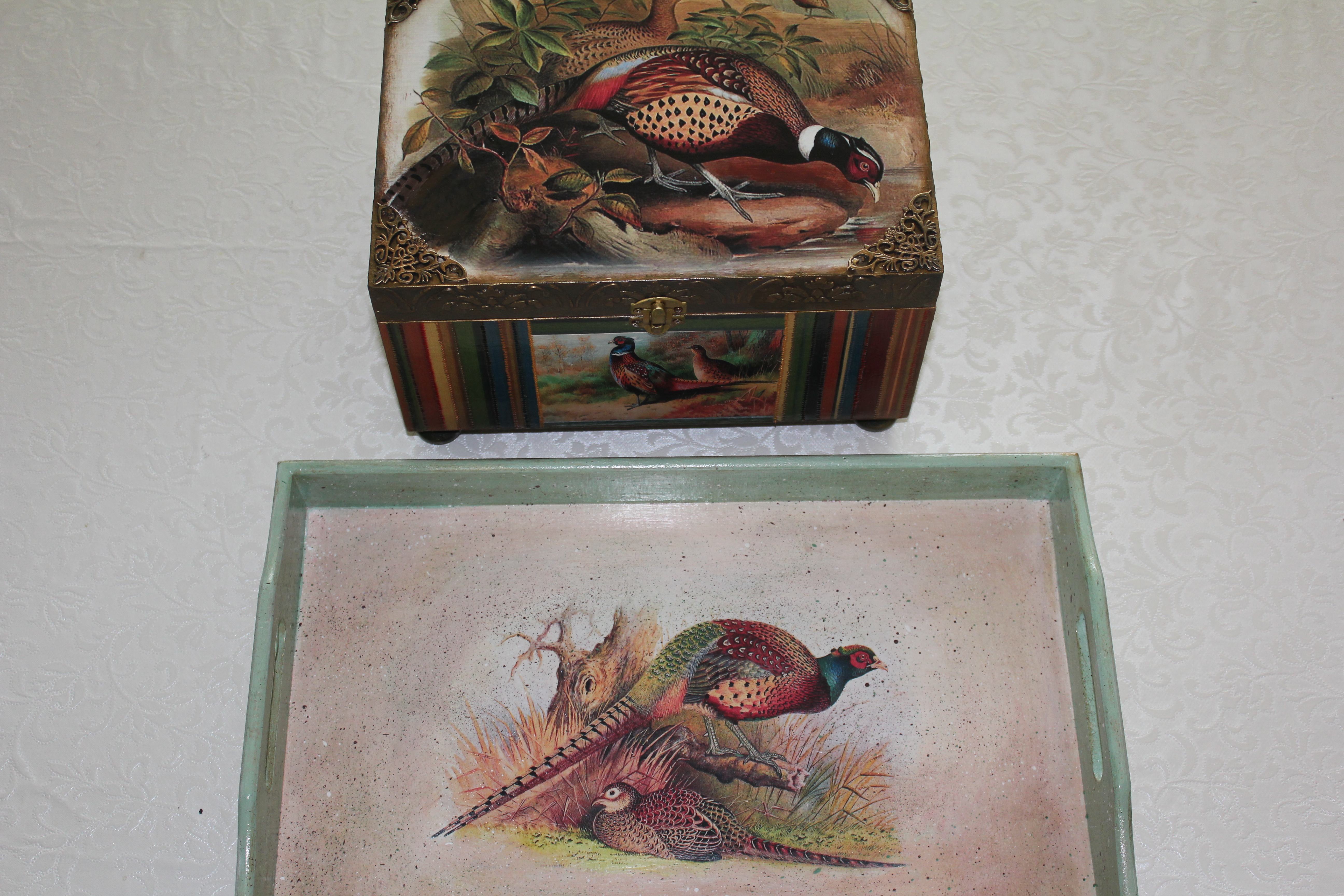 Давно хотела сделать декупаж с фазанами и вот результат. Сейчас, когда смотрю на готовые работы, думаю, начни я сначала, сделала бы по другому. Но это будет в следующий раз, а сейчас выношу на ваш суд эти две работы. Мне еще несколько раз надо будет покрыть их лаком. Критика одобряется!((: