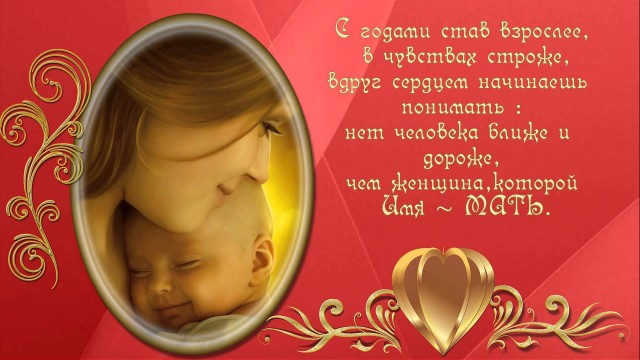 Всем женщинам хочу пожелать терпения, крепкого здоровья, долгих лет жизни, радости и благополучия. Пусть звучат в вашей жизни лишь теплые слова, случаются радостные события, пусть невзгоды не стучатся в ваши двери, и каждый день будет по-своему прекрасным. Пусть дети радуют вас частыми визитами, звонят чаще, и заботятся о вас так же, как и вы заботились о них. Быть матерью – значит быть сильной и быть горячо любимой.