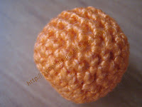 Когда бусина начнёт заметно сужаться, оставляем её в вязанном круге и начинаем убавку петель (аналогично как делали прибавку). Вот такая бусина должна получиться: