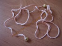 - вязаные бусы можно чередовать с простыми бусинками, цветочками или маленькими вязаными игрушками;