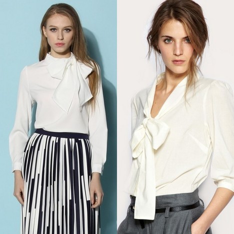 Элегантный способ оформления горловины блузки при помощи объёмного банта, или завязок а-ля галстук, знаком женщинам достаточно давно. И вот, подобные фасоны снова в тренде. Следует отметить, что блузы с бантами не только красивы, но и универсальны - они одинаково хорошо смотрятся и с деловым костюмом, и с рваными джинсами. К тому же, подобный акцент просто невозможно не заметить, что делает образ особенно привлекательным и неповторимым.