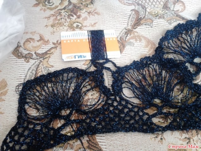 Увидела и влюбилась. А тут представилась возможность (время, которого не хватает) осуществить задуманное - 2 недели дневного стационара. И я взялась за дело. Поскребла по сусекам и нашла ниточки. Сначала связала шаль, вернее шальку: в размахе - 175, вниз - 105. Нитки: Семеновская пряжа - Искра. Шерсть-40, акрил -40, метанит-20. 100гр/1316. Вязала в 2 нитки. Ушел весь моток, т.е. 100 гр. Крючок №3.