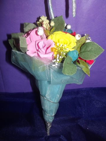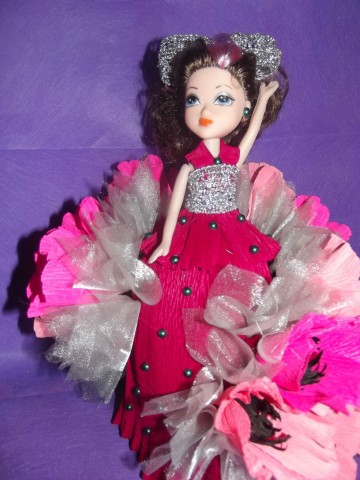 Кукла прекрасный подарок для маленькой девочки. Цветочки называются анемоны, внутри конфетки. Основа пеноплекс, внутри кукла, платье из гофробумаги, кружево, бусины,органза.