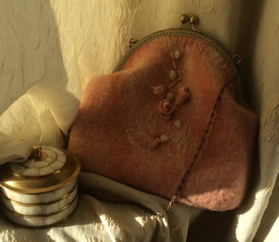 Вот такая сумочка получилась. Хотелось сделать какую-нибудь сумочку а-ля винтаж. Внутри два кармашка. Украшена бисером и натуральными камешками. Буду рада советам и комментариям