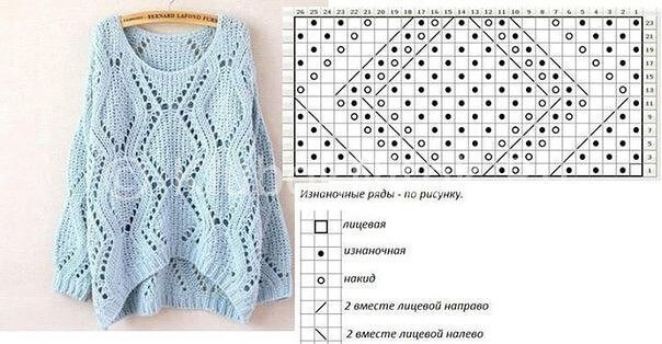 На спинку и перед выходит по два треугольника, а на рукава 2 трапеции. Смотрим схему. Вязание выполняется снизу вверх.