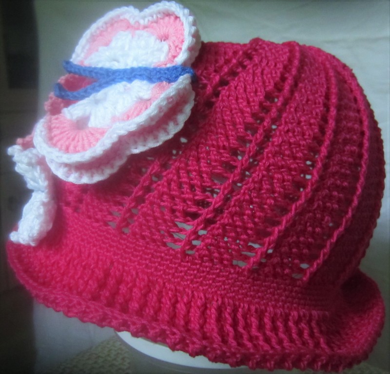 Надеюсь, что скоро на улице будет тепло и внучке понадобится легкая панамка от солнца. На просторах интернета нашла панамку "Пчелкино счастье". Вот по мотивам МК этой панамки я и связала своей внучке вот такую: