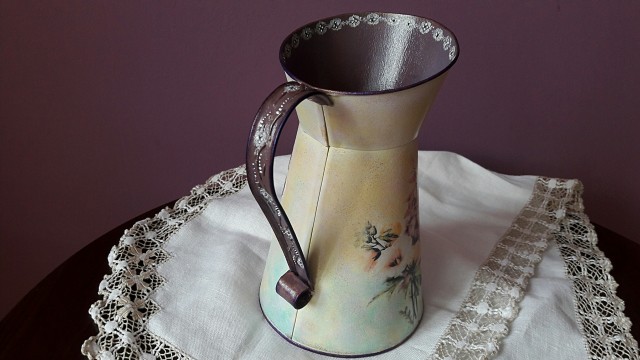 С этой леечкой мои ,, отношения,, как-то сразу не сложились. Распечатала картинку, приклеила .... и все, на месяц отложила. Идеи улетучились, желание тоже, а вот на днях она попалась мне на глаза...и все сложилось, как пазл. А что из этого получилось, судить вам!)
