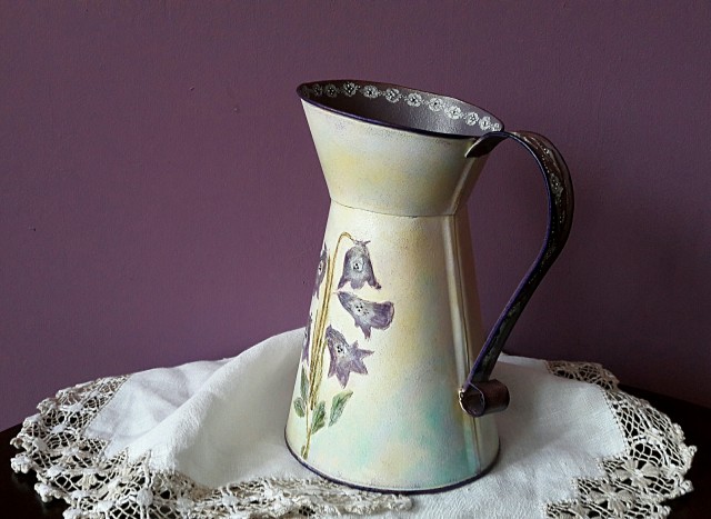 Миная, спасибо огромное! А на фото, в принципе, все видно. С одной стороны распечатка с букетом полевых цветов, с другой — обьемные колокольчики шпатлевкой (художник из меня никакой, разрисовала их, как смогла)))). Ну а все остальное просто фон. Леечка на самом деле не большая, дополнительный декор между цветами определенно был бы лишним.