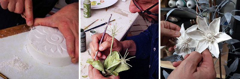 В качестве материала для стеблей используются металлические прутья, ибо фарфор довольно хрупкий материал для этого.