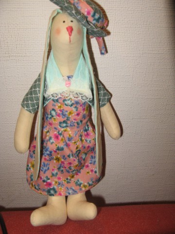 Здравствуйте, Марина! Зайка хорошенькая, миленькая… Кроме пожеланий, которые Вам написали девочки, я бы добавила свое небольшое замечание — мне кажется шляпка немного великовата