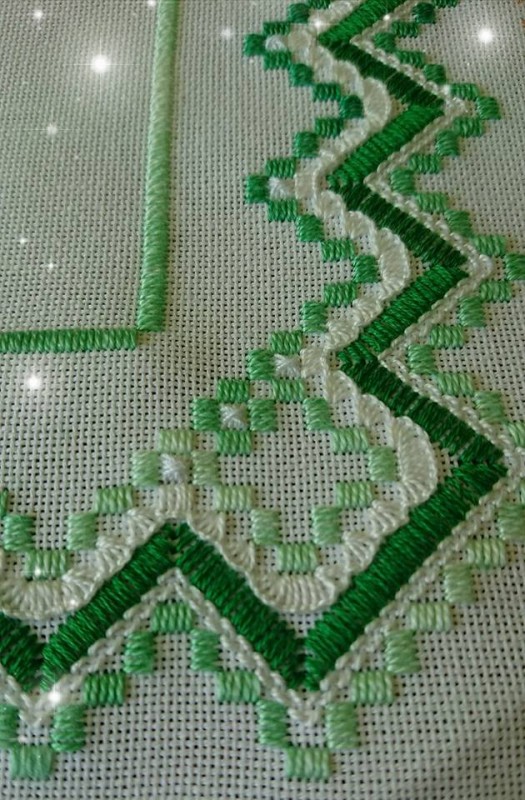 Это вышивка контрастов, уникальная комбинация роскоши, искусства и современности (соединение элементов Хардангера, Барджелло и мережка).