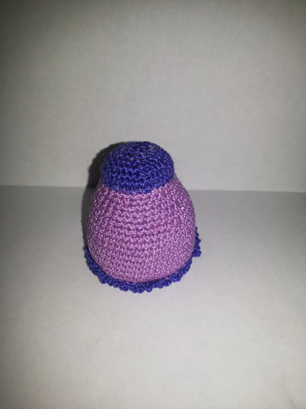 1-й ряд (сиреневый цвет): Набираем 7 в.п. и вяжем вокруг них и далее по спирали