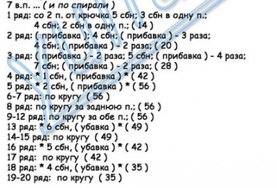29й ряд: *1 сбн, убавка* 7 раз (14)