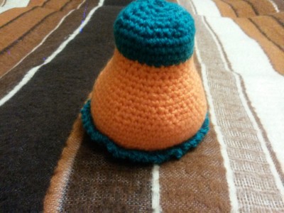 здесь можно обвести донышко и вырезать опору из картона или пластика для устойчивости, поставим донышко позже, чтобы не мешало вязанию